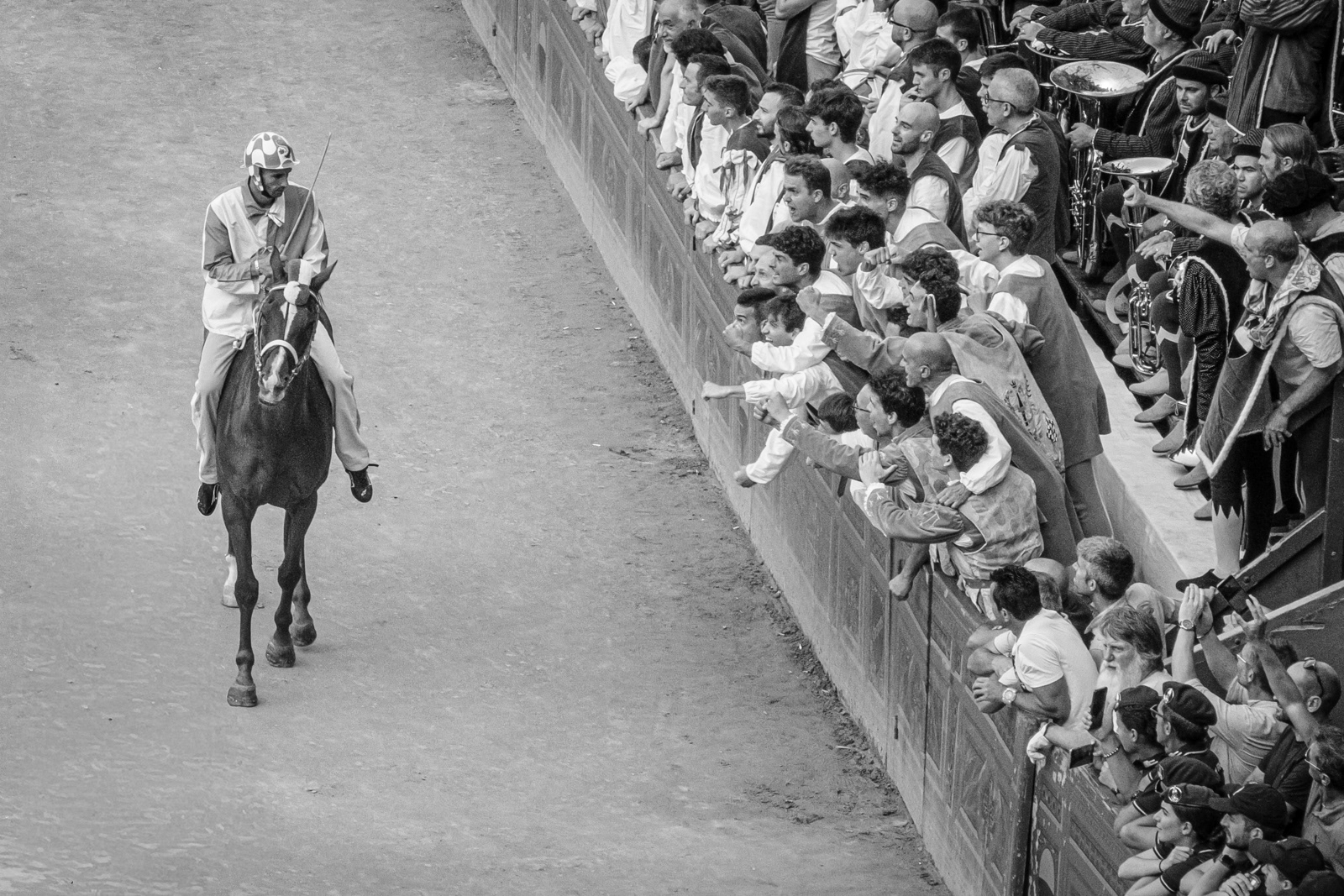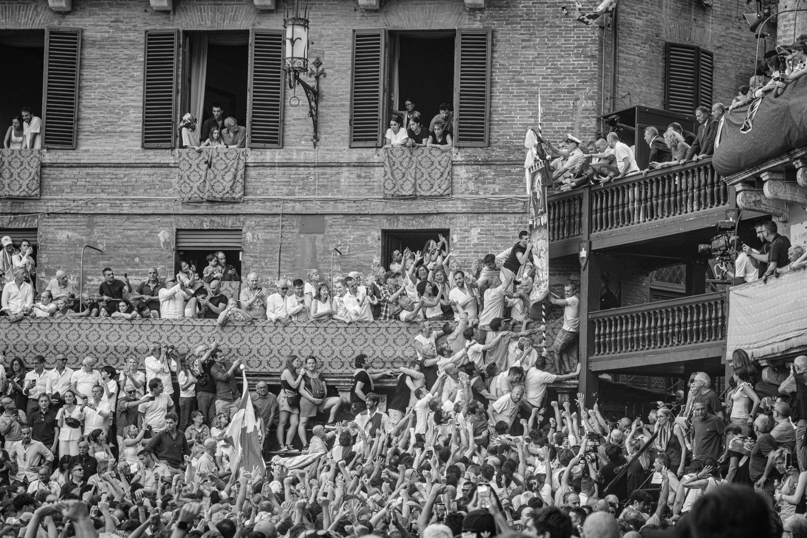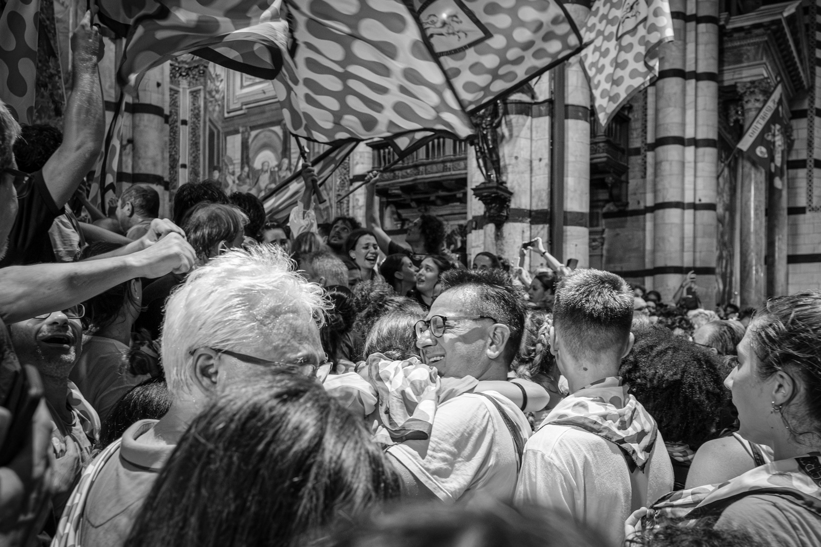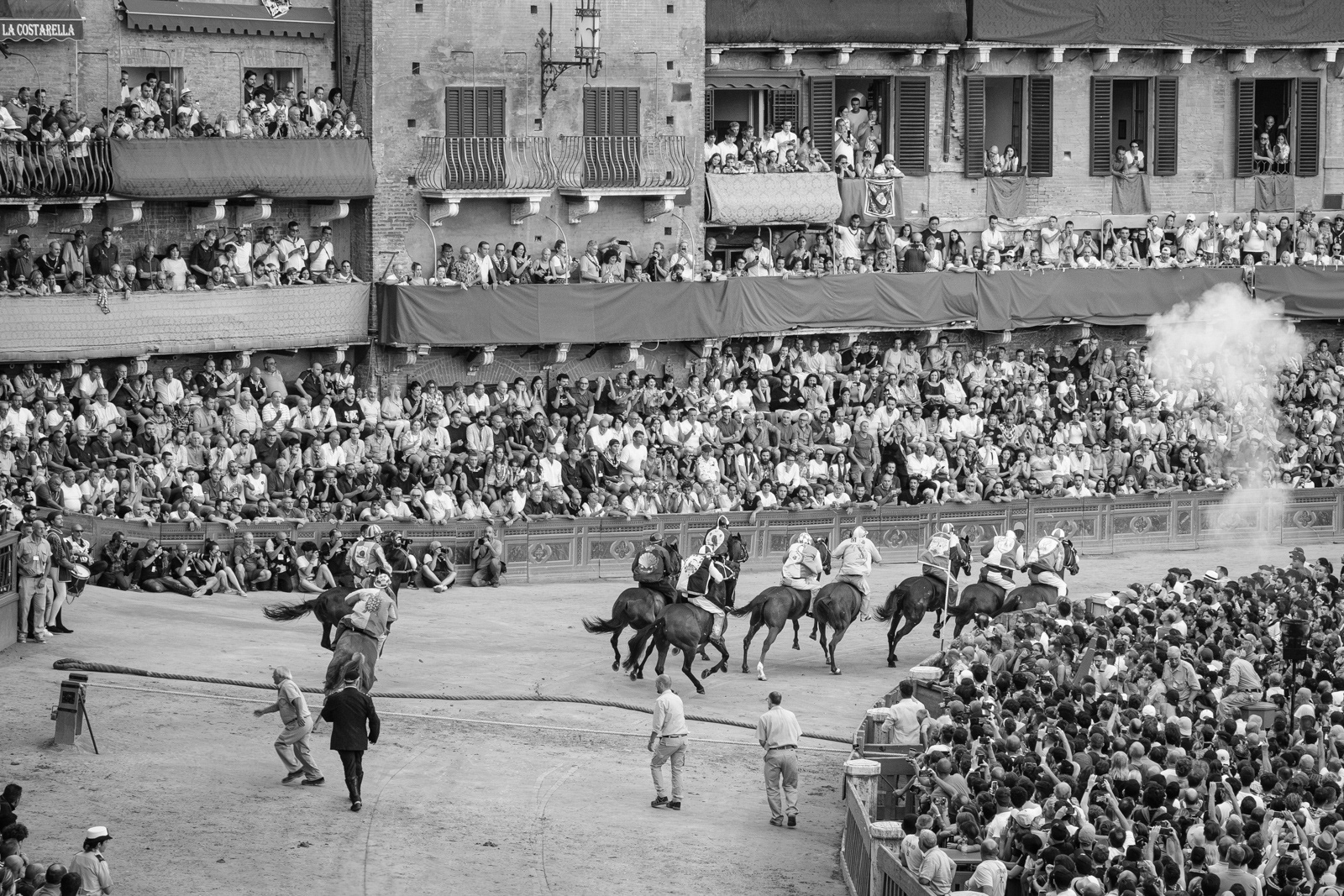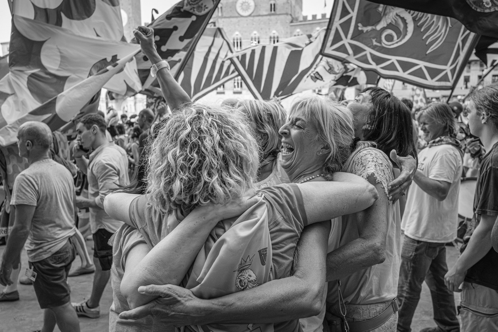 Telling the Palio of Siena is not easy. Apparently it’s a colorful horse race, held in Siena twice a year to honor the Virgin Mary. Ten horses representing the different quarters of the town (the “contrade”) fight each other running around Siena’s central square, ridden bareback, and they can win even if they unseated their jockey. The winner takes it all. An attraction for outsiders and tourists who watch incredulously. Yet, after five hundred years, whether you love it or not, the Palio still speaks a lot about us Italians, even of those who don't wear a contrada’s handkerchief around the neck. Looking at the Sienese, you see that what really matters is that mixture of sacred and profane, tradition and rivalry, victory or disgrace. The choirs between opposing peoples, the waiting, the silence before the move, the tumultuous moments of the race, the joy and tears.