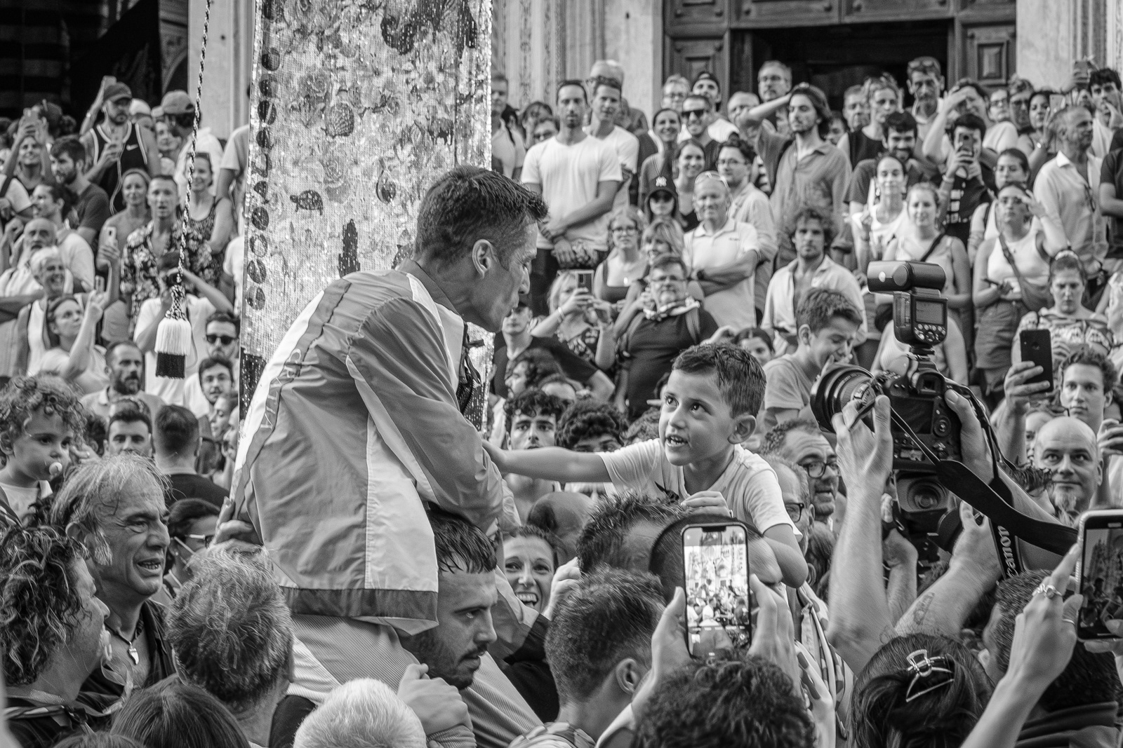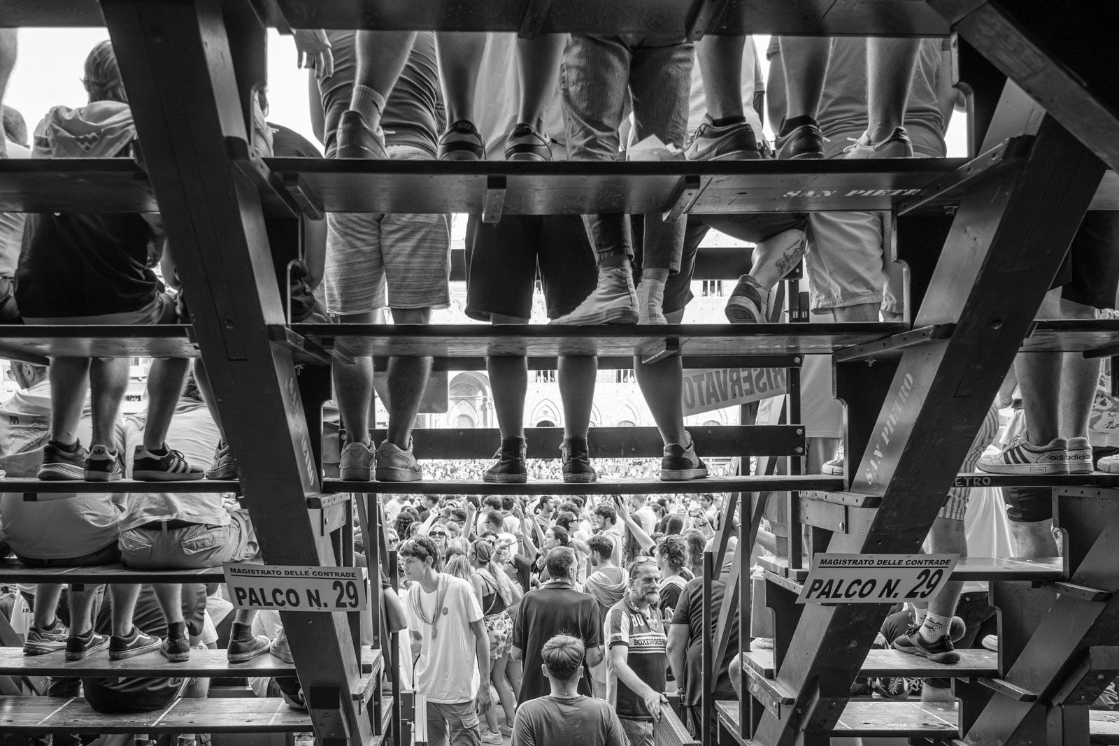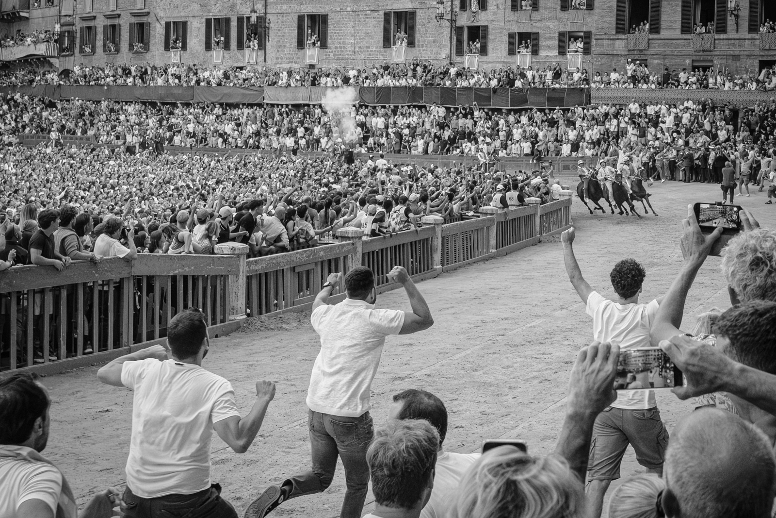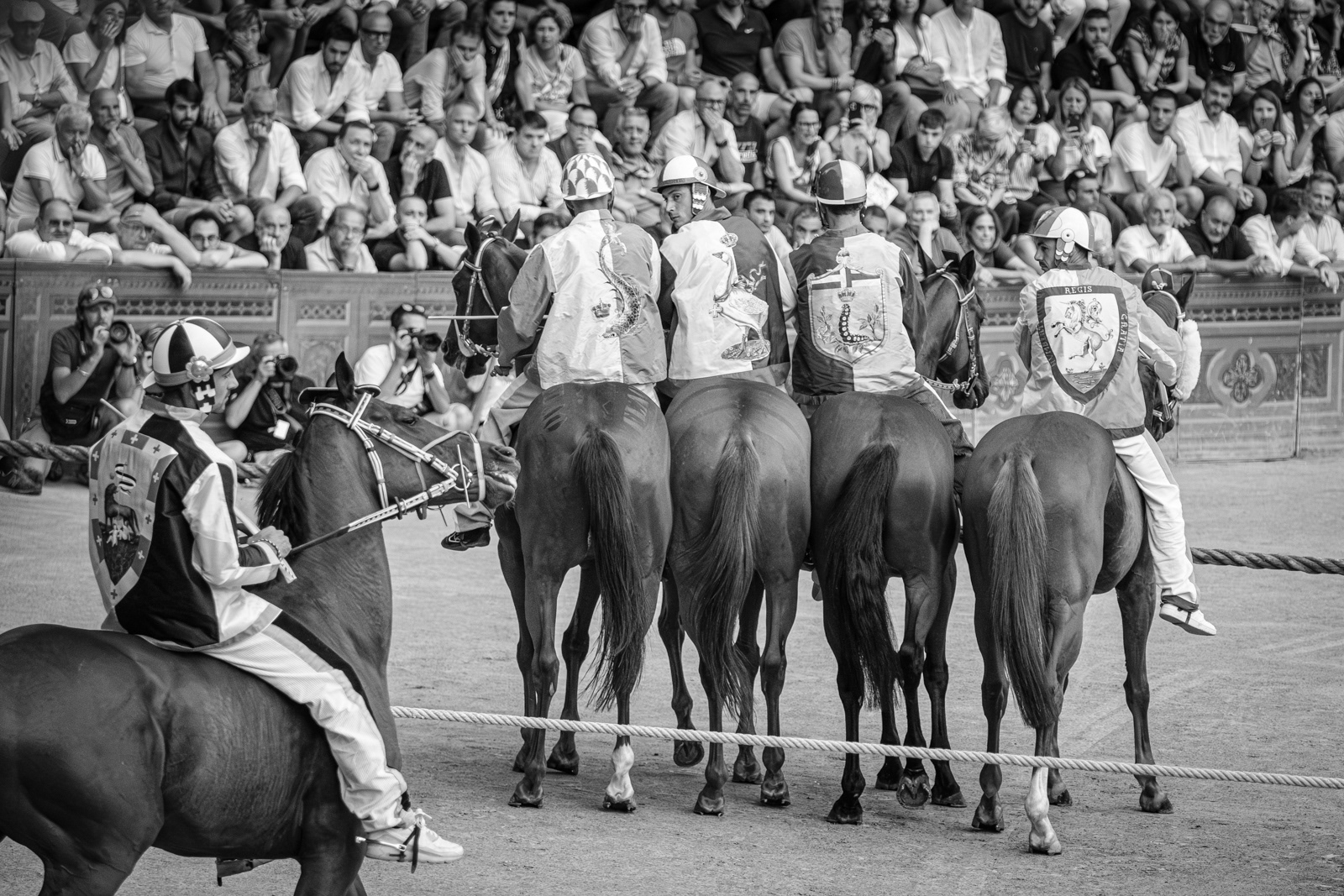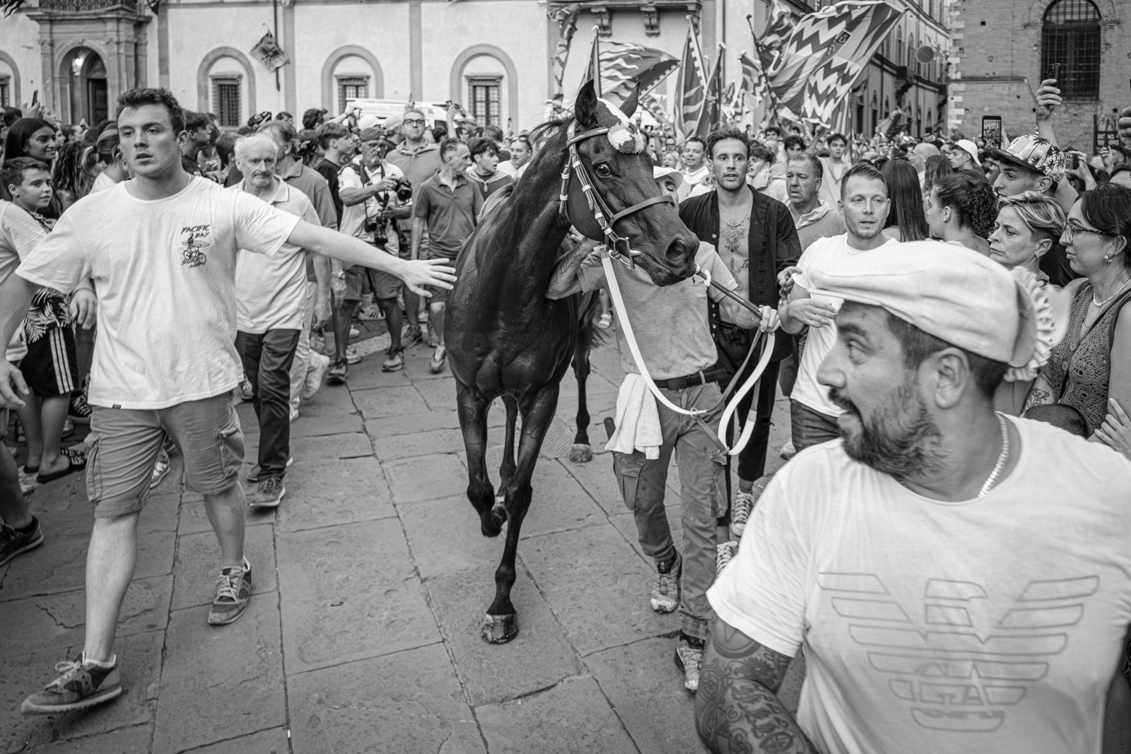 Telling the Palio of Siena is not easy. Apparently it’s a colorful horse race, held in Siena twice a year to honor the Virgin Mary. Ten horses representing the different quarters of the town (the “contrade”) fight each other running around Siena’s central square, ridden bareback, and they can win even if they unseated their jockey. The winner takes it all. An attraction for outsiders and tourists who watch incredulously. Yet, after five hundred years, whether you love it or not, the Palio still speaks a lot about us Italians, even of those who don't wear a contrada’s handkerchief around the neck. Looking at the Sienese, you see that what really matters is that mixture of sacred and profane, tradition and rivalry, victory or disgrace. The choirs between opposing peoples, the waiting, the silence before the move, the tumultuous moments of the race, the joy and tears.